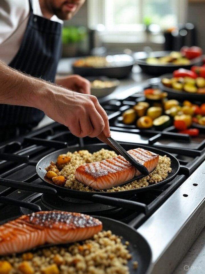 - Dinner: Grilled Salmon with Quinoa and Roasted Vegetables